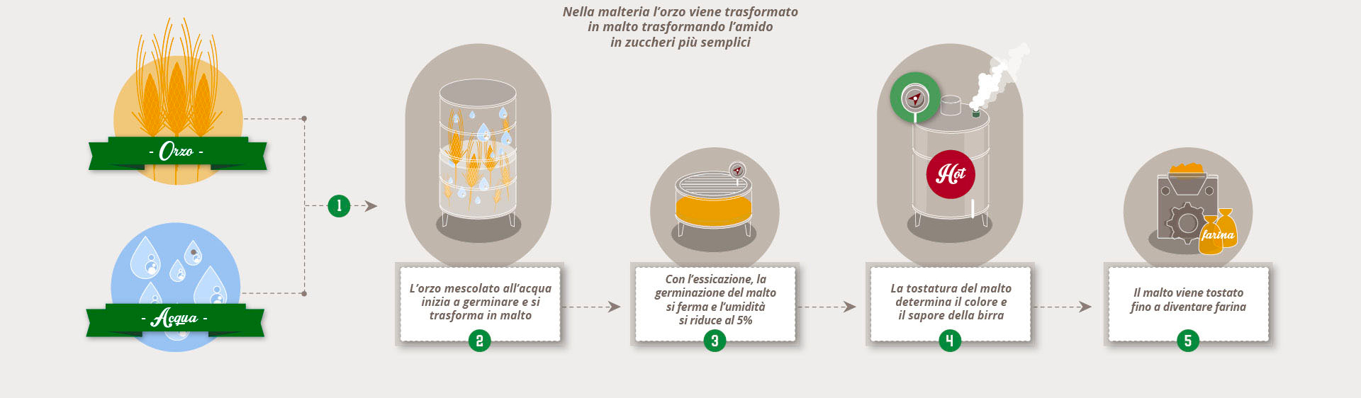 Tutte le birre hanno un denominatore comune: nascono dalla combinazione di quattro ingredienti che rendono la birra un prodotto vivo e in continua evoluzione. Questi ingredienti sono: malto d’orzo e cereali, acqua, luppolo e lievito.
